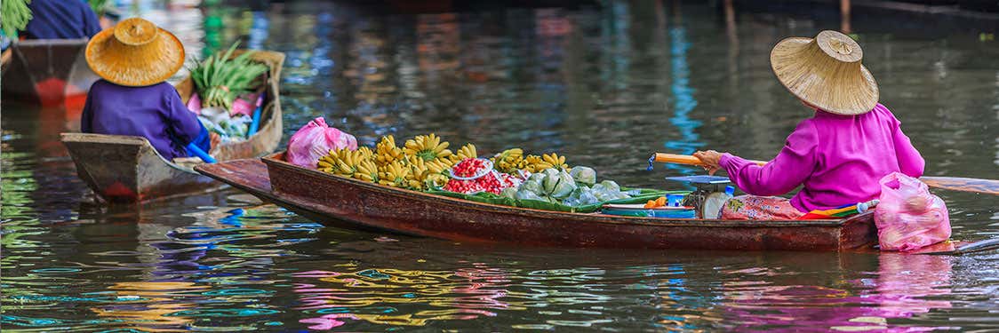 The Damnoen Saduak Floating Market is Thailand's most popular. It can be found in Ratchaburi province, 100 km (62 miles) from Bangkok.